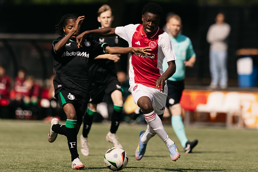 Ajax O15 speelde als koploper in de strijd om het kampioenschap tegen nummer twee Feyenoord O15. Ondanks een doelpunt van Denzel Darko bleef het op de Toekomst bij 1-1.