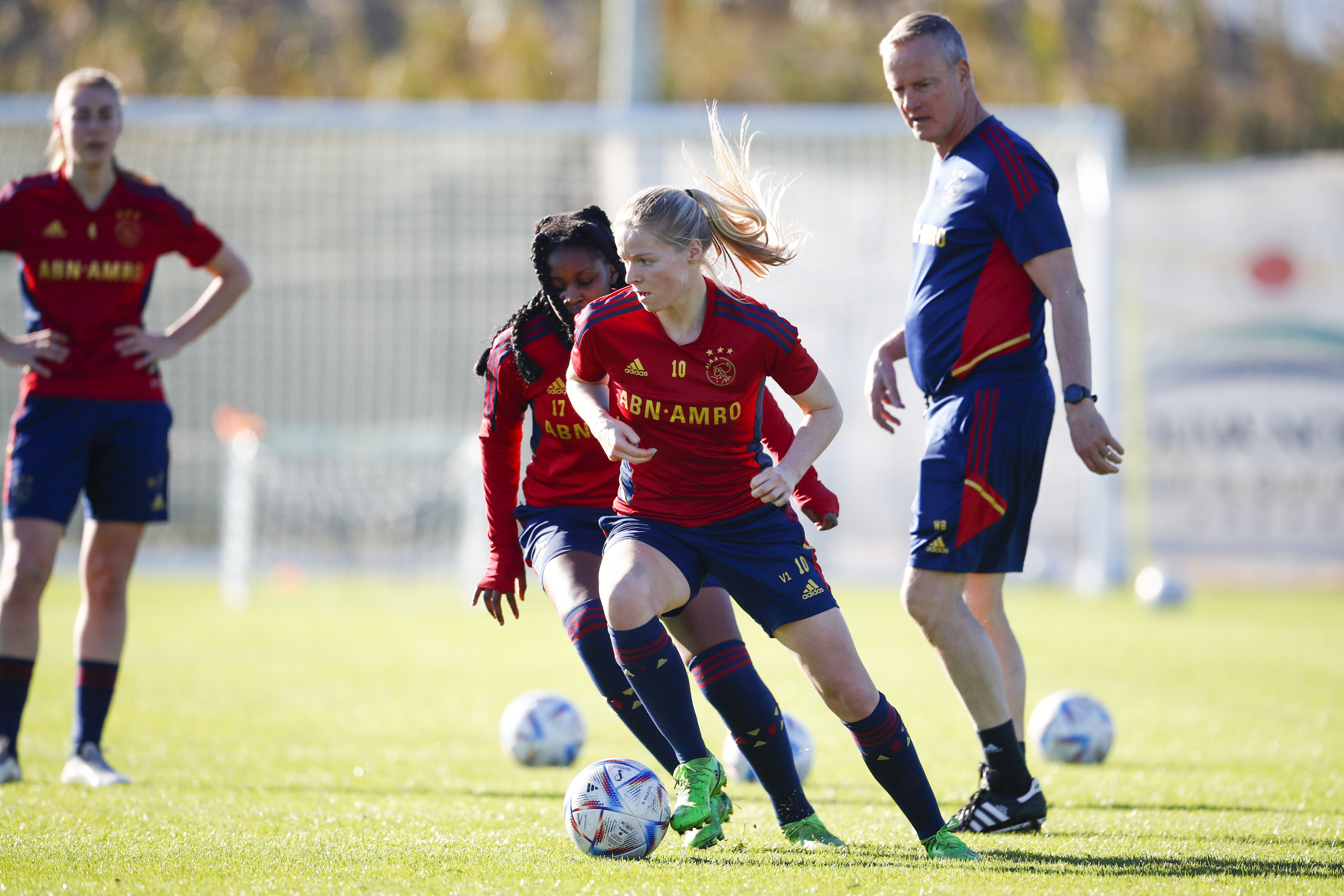 Nadat de groep compleet was startte de training met een uitgebreide warming-up waarbij ook hekjes en grote ballen aan te pas kwamen. Hierbij lag de focus op de rompstabiliteit van de Ajax Vrouwen. Vervolgens stonden er veel tactische vormen op het programma.