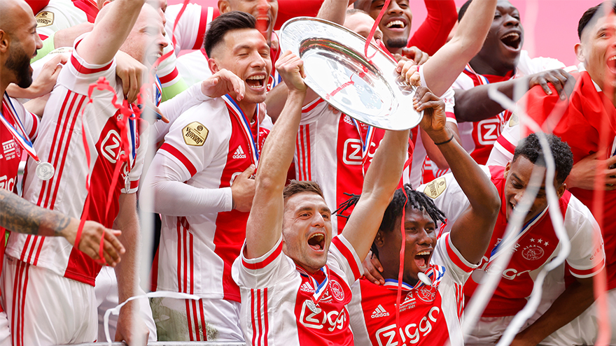 Na het veiligstellen van de 35e landstitel gingen de spelers en staf van Ajax los. De ontlading na het laatste fluitsignaal van het duel met FC Emmen brengen we voor je in beeld.