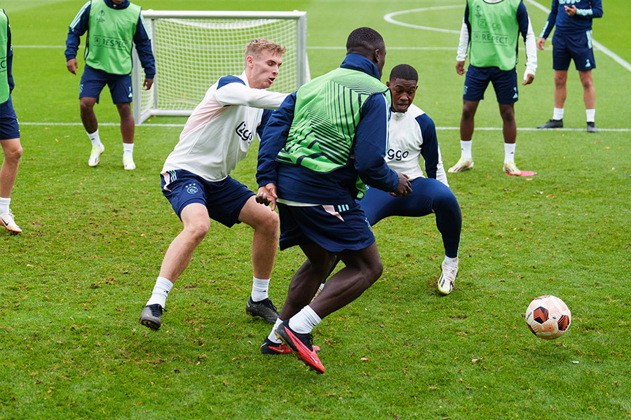 Ajax werkte de afsluitende training zoals gebruikelijk af op sportcomplex de Toekomst. De laatste puntjes werden woensdag op de i gezet middels een uitgebreide warming-up, een positiespel en verschillende tactische oefenvormen. De Ajacieden maakten een gretige indruk en lijken klaar voor het treffen met Olympique Marseille.