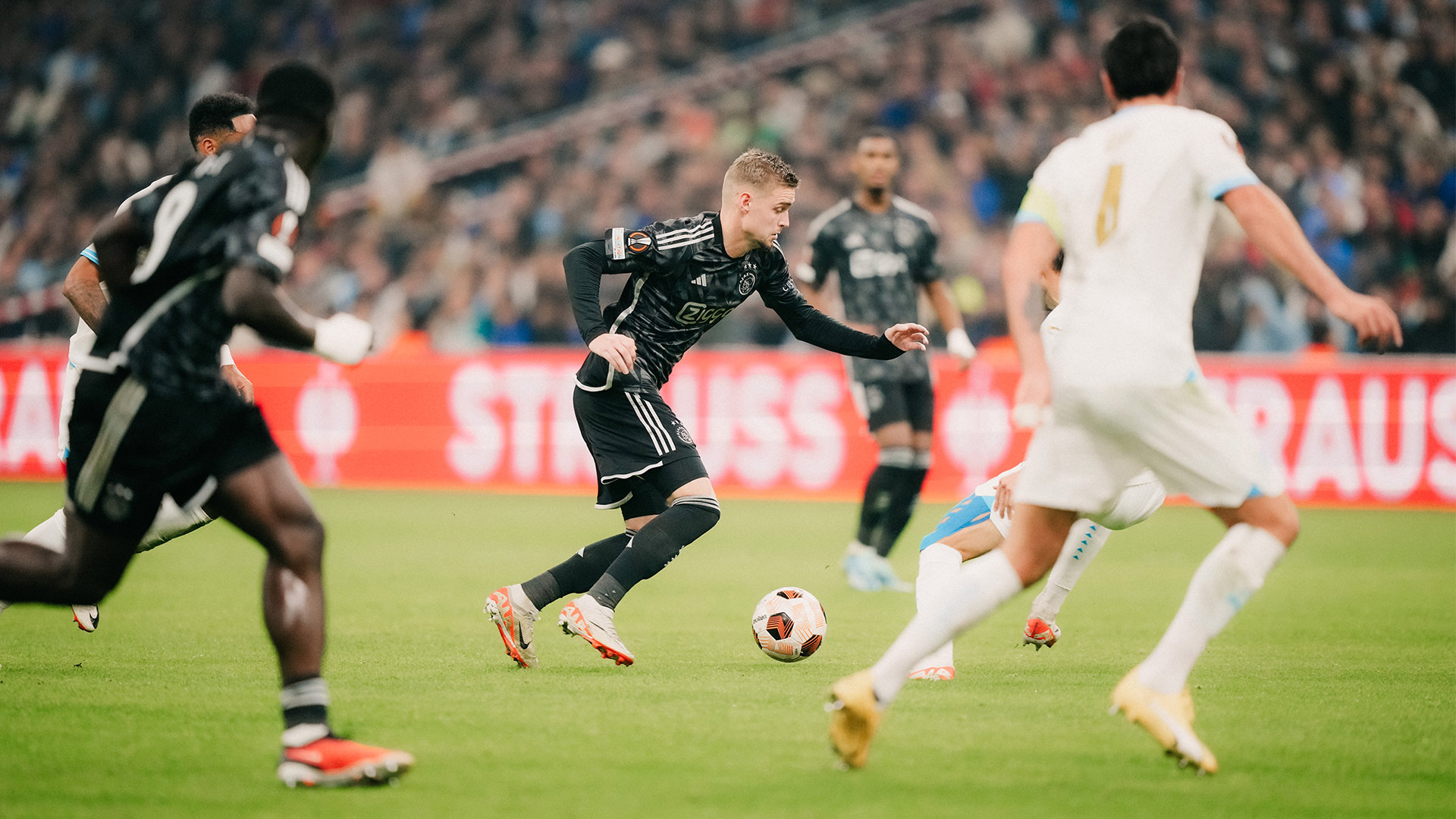 Ajax heeft na een intens duel met 4-3 verloren van Olympique Marseille. Voor Ajax scoorden Brian Brobbey (2) en Chuba Akpom. Ajax stond een half uur met tien man na een rode kaart voor Steven Berghuis. De belangrijkste foto's van de wedstrijd vind je in dit artikel.
